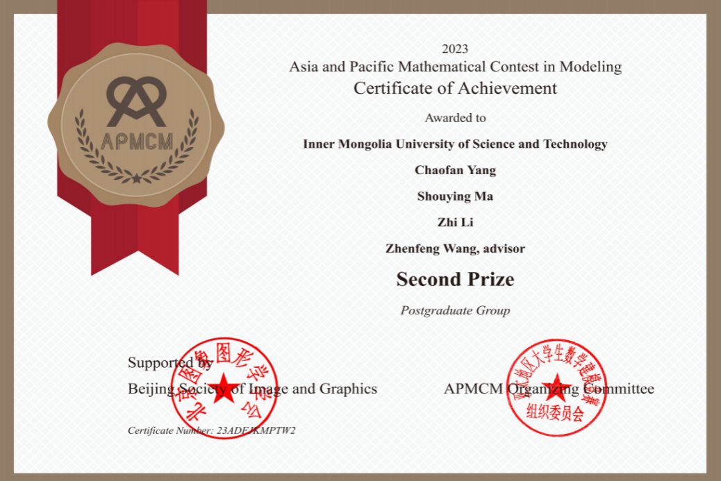 第十三届亚太地区老员工数学建模竞赛(Asia and Pacific Mathematical Contest in Modeling,APMCM)成绩揭晓。太阳成集团王振峰老师指导的团队在本次比赛中脱颖而出,荣获研究生组全国二等奖。