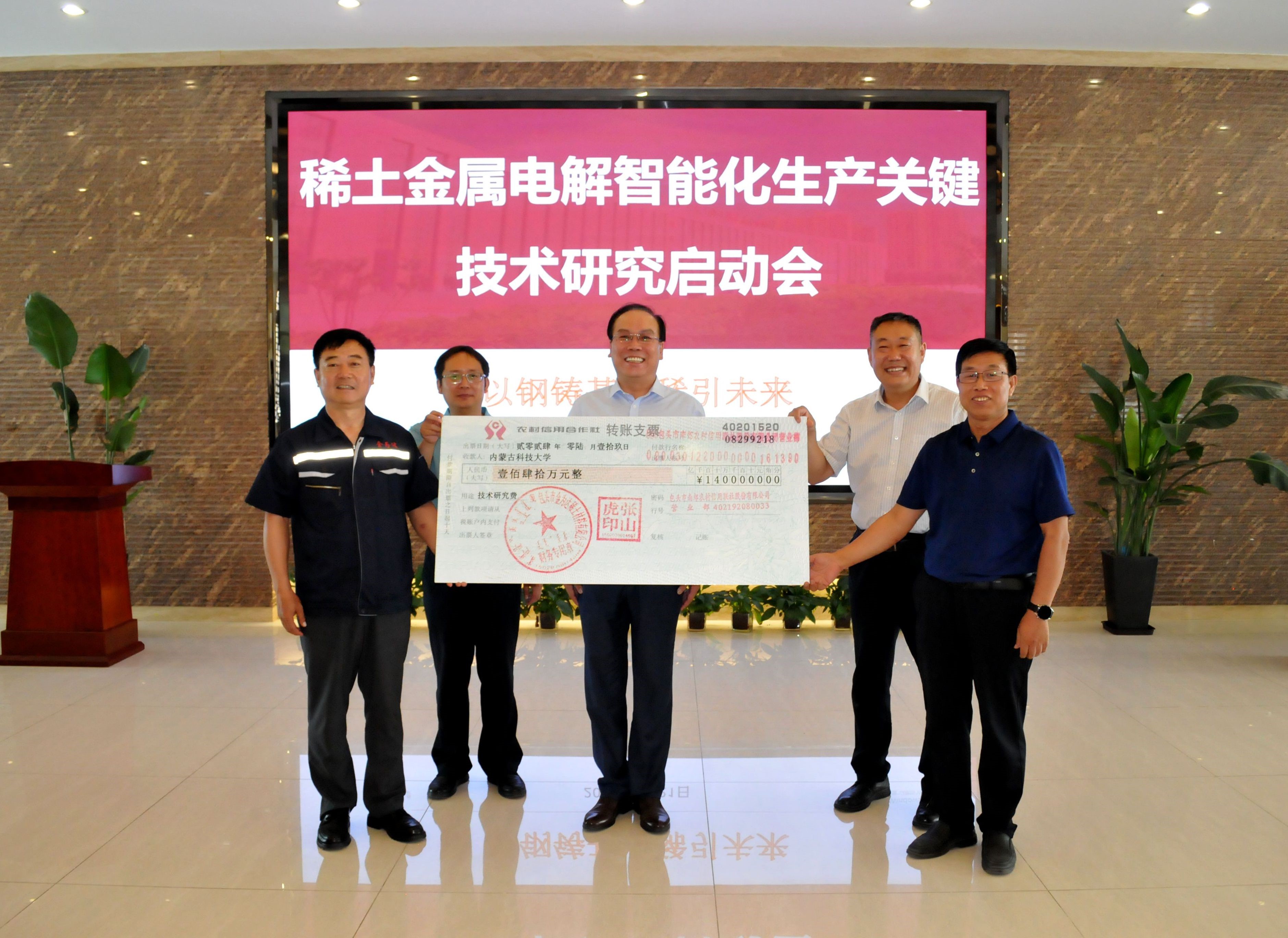 张山虎公司的支持表示感谢,并介绍了金为达企业的基本情况,表示太阳成集团tyc行业服务能力强、贡献度高,在人才培养和科研水平有较强的实力。愿意与太阳成集团tyc展开项目合作,并现场与太阳成集团tyc签署“稀土金属电解智能化生产关键技术项目”,移交项目转账支票140万元整。