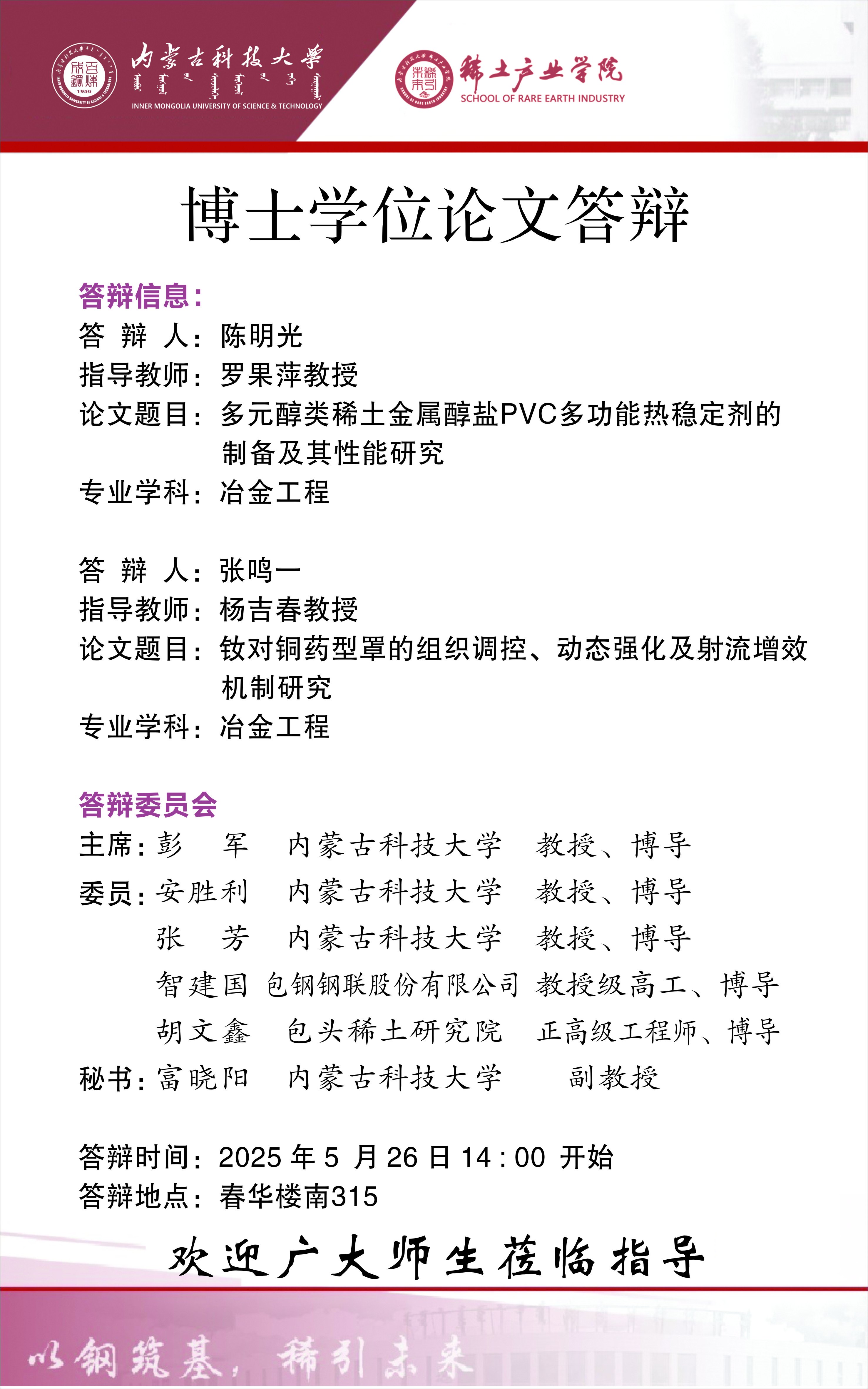 上一条:博士学位论文答辩公告 》 下一条:2024-2025学年春学期冶金工程专业方向分流结果公示