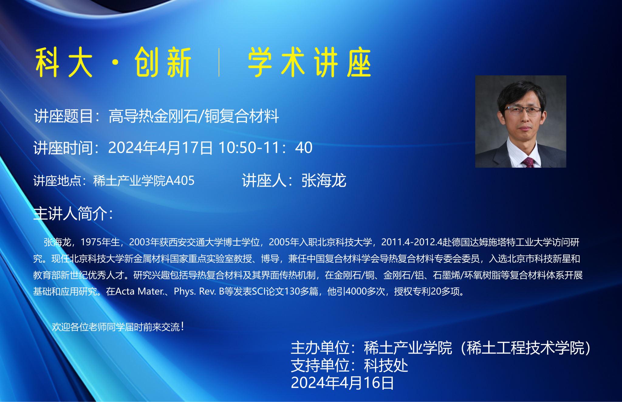 讲座题目:高导热金刚石/铜复合材料